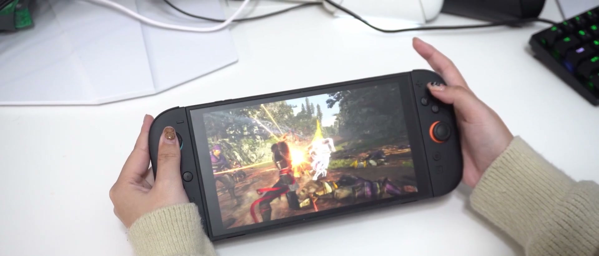 首先Switch 2 掌機模式下無需連接電源,掏出主機就能直接啟動遊戲開玩,是出去在外最方便的選擇,可以充分利用碎片時間,在Switch 2 的戰鬥上,操作靈敏手感極佳,打起來毫不拖泥帶水,連段也行雲流水,幾乎感受不到任何延遲或不適,戰鬥節奏一樣舒服。