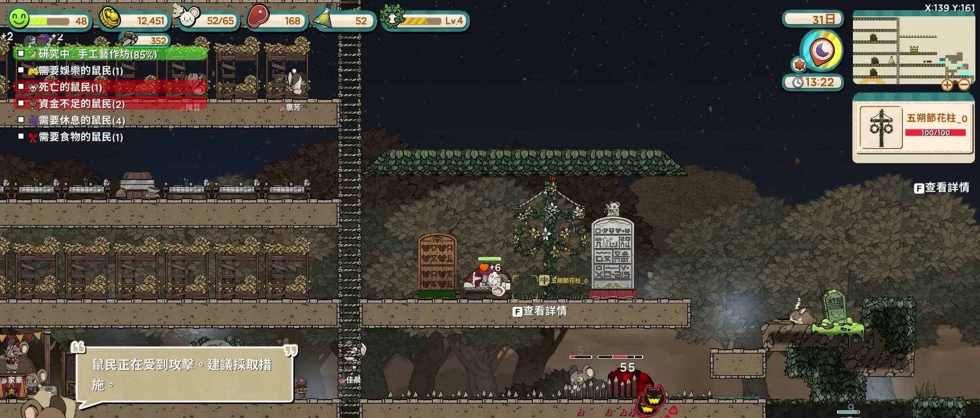 不過隨著繁榮度的提升,敵人會明顯變強,所以說著急提升繁榮度也不是好事,最好慢慢穩定的提升,準備好軍事的建築,以及訓練幾隻軍事老鼠之後,再去提升會更好,不然讓辛苦建造的城市和老鼠們被摧毀,還要去重新經營就更花時間啦。