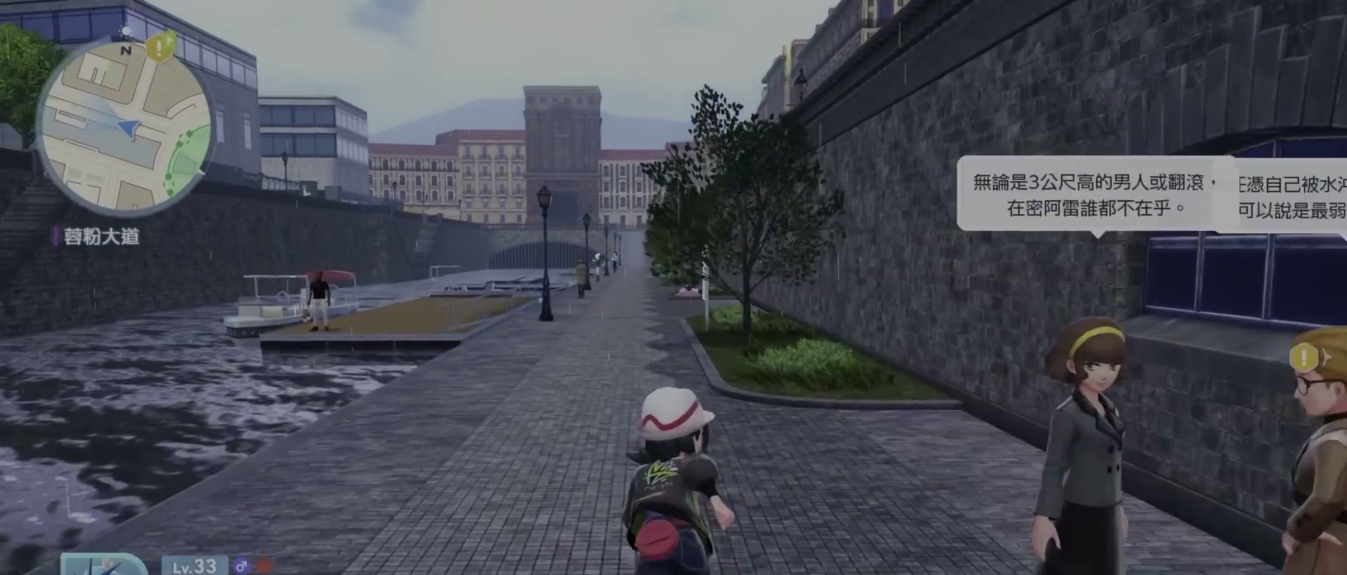 最後是黏黏寶,他也是我這次介紹10隻裡面等級比較高的,稍微難抓一些,他位於地圖左方的南側大道,這裡有一條運河,並且要注意,出現有個天氣條件為雨天,只有下雨的時候,黏黏寶才會出現。