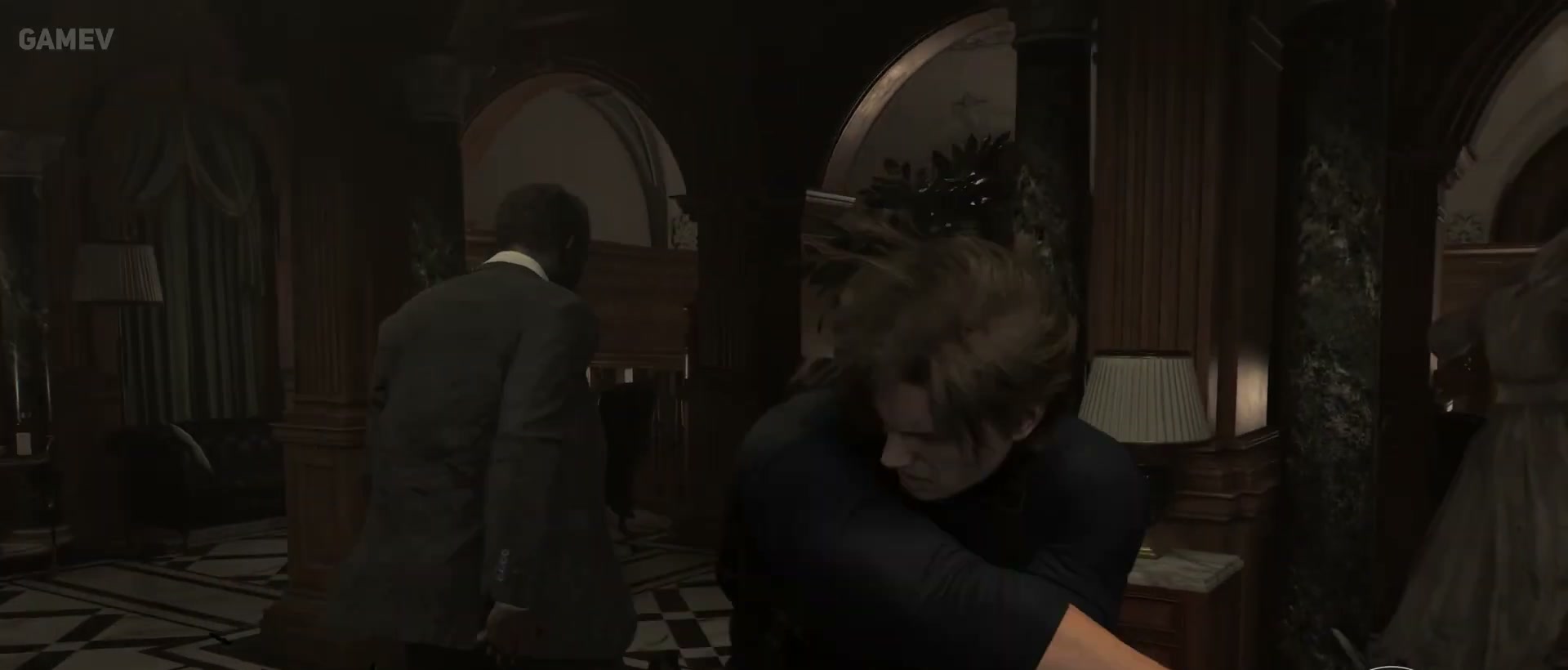 切到里昂這邊後,遊戲的玩法會直接改變,同樣的敵人,葛蕾斯可能只能繞過去,里昂就能用火力、站位、還有近戰手段去把敵人打飛,把剛才累積的恐懼感轉成爽快感。